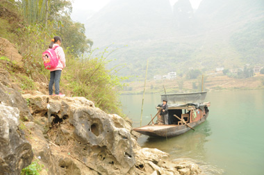 蒙妹玲就读于贡川乡红柳小学,上学要横渡红水河。孤单地沿着河沿土路走了30多分钟后,蒙妹玲到了渡口。7时左右,其他村组的10多个学生陆续汇集于此,一艘由报废渔船改装的渡轮把他们接过河。渡轮的船舵传动绞索是几截自行车链条拼起来的,绕船帮一周,裸露在外,拐角处的几个滑轮单薄得几乎随时可能被扯断。到河对岸的码头,坐船要近半个小时。看着湍急的河水,蒙妹玲经常会感到害怕。